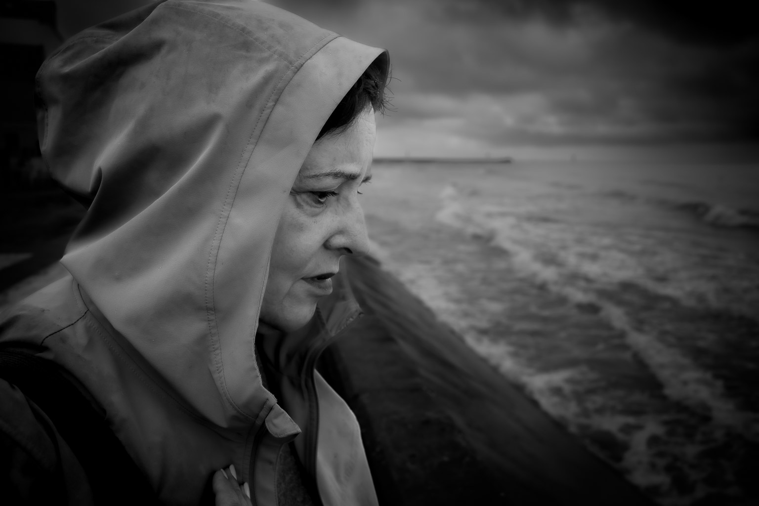 Woman waiting at the pier as The French Lieutenant's woman